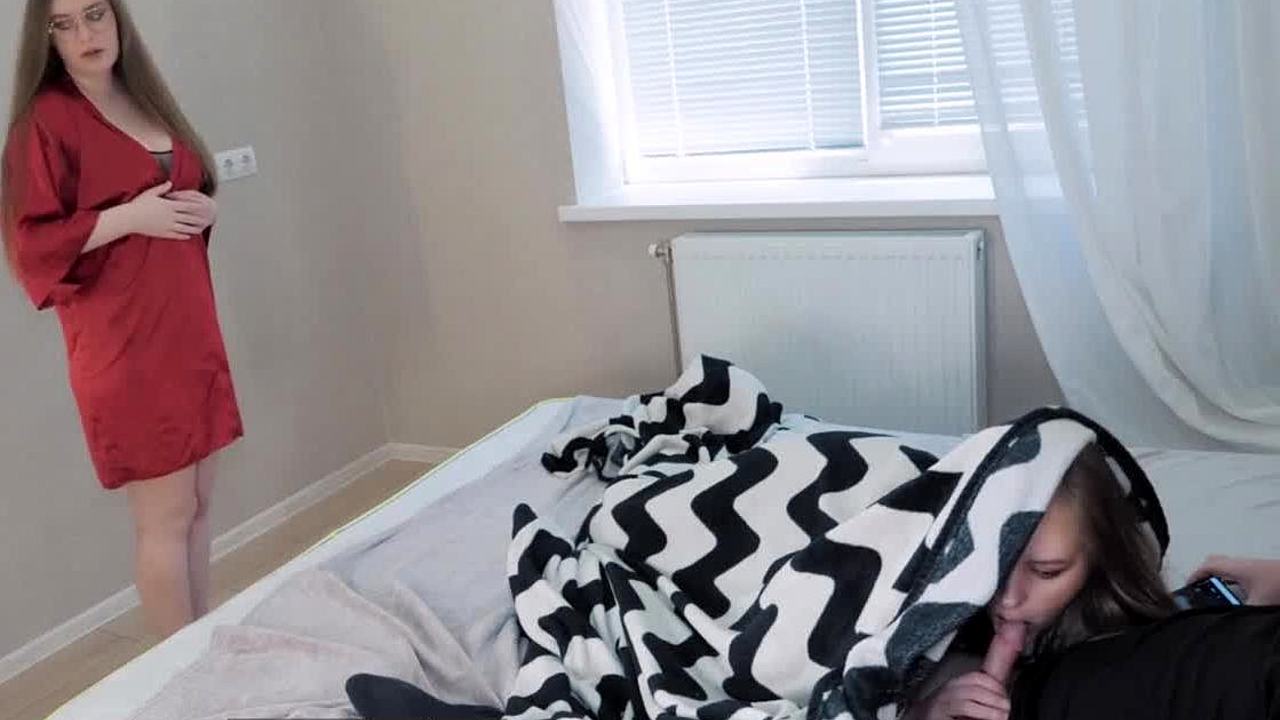 Family threesome unfolds with stepmom and boyfriend action.