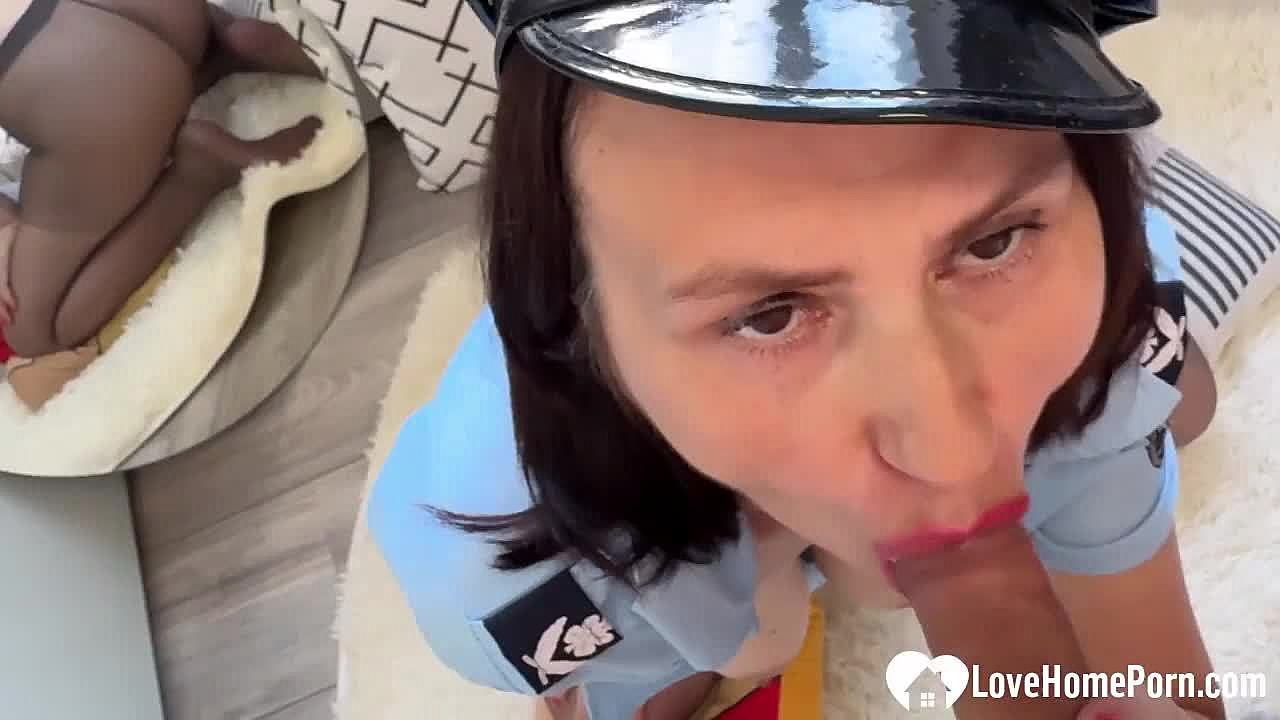 I love how this police milf gets naughty sucking my huge dick at her place in pov